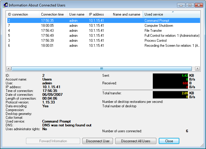 Page Content RAC Server - Screenshots Main window Server setting Adding a new user account Individual setting of a user access to individual services Accessing server is possible using the system and domain accounts Mail messages sending Information about connected users with the possibility of disconnection of one or all users Asking when there is a requirement for connection in remote system
